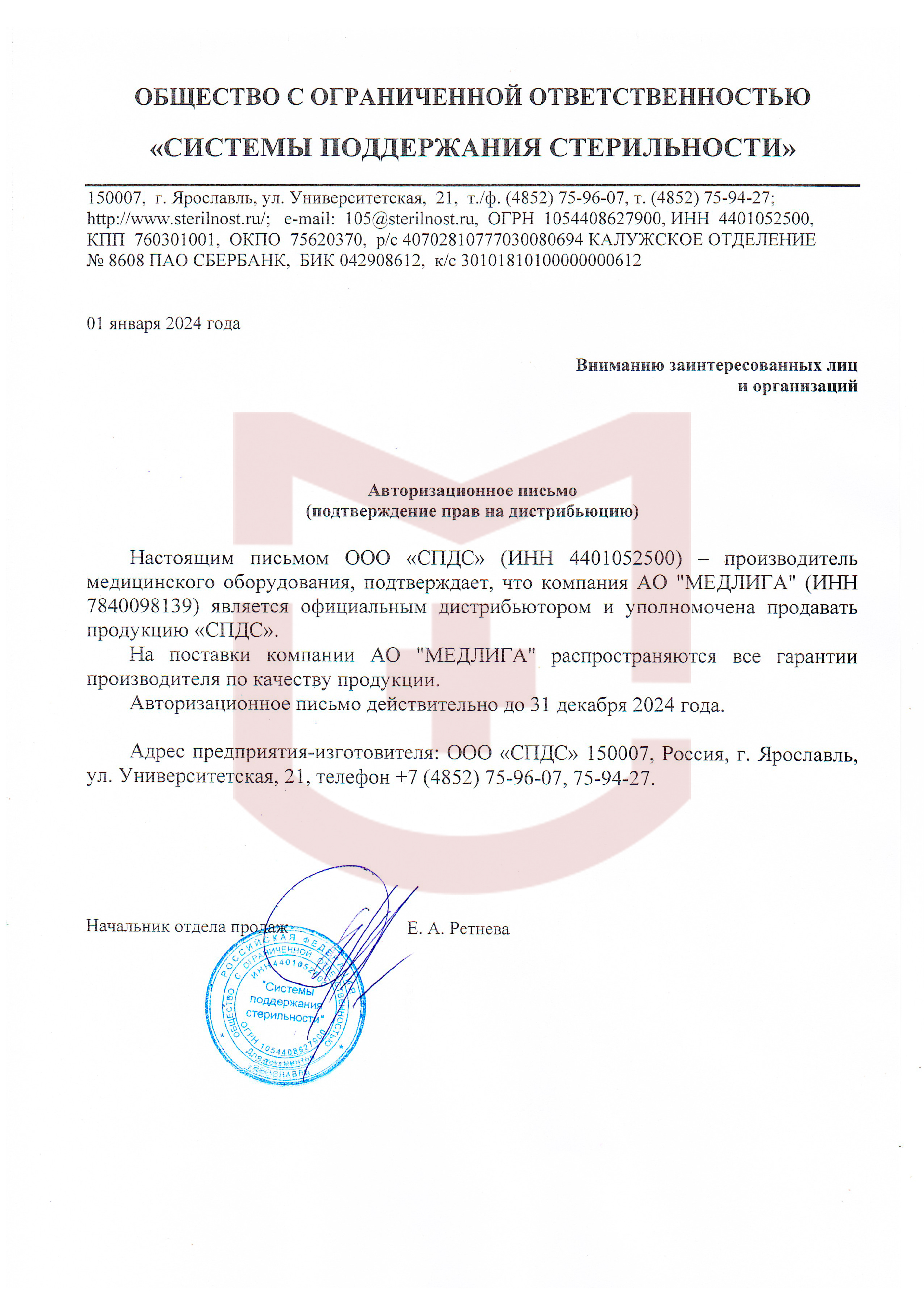 Авторизационное письмо СПДС от 2024 года