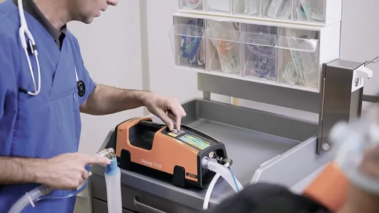Компактный и надежный аппарат Oxylog® 3000 plus обеспечивает высокую эффективность вентиляции благодаря таким функциям, как AutoFlow, встроенная капнография и неинвазивная вентиляция, поможет безопасно транспортировать пациентов и проинформирует о правильности интубации и эффективности вентиляции.