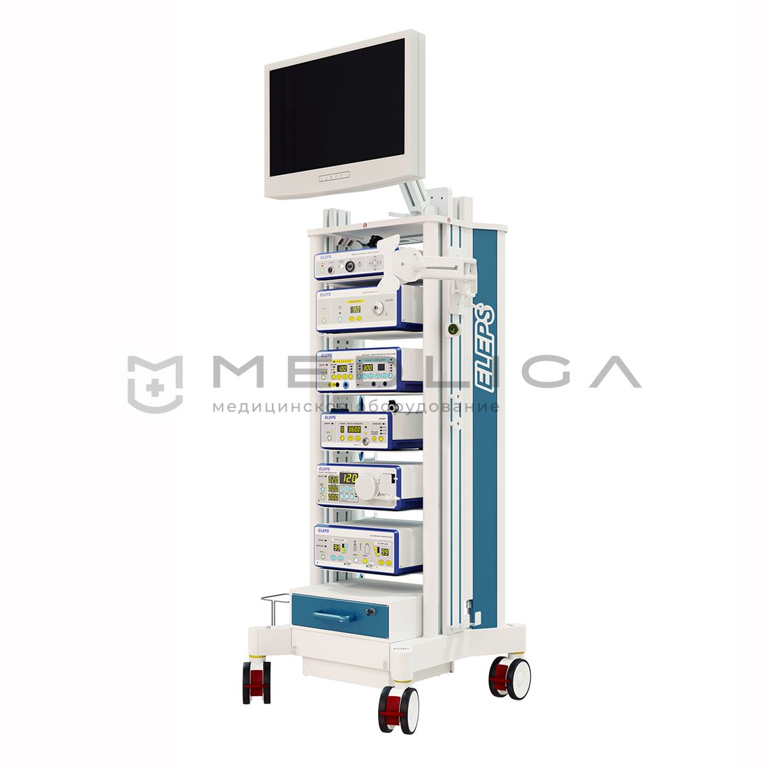 Артроскопическая стойка Элепс включает в себя инструменты для обеспечения высококачественной визуализации при проведении эндохирургической процедуры – цифровую видеокамеру, монитор, источники освещения и др. Специальная стойка обеспечивает компактное размещение всего набора оборудования и инструментария.