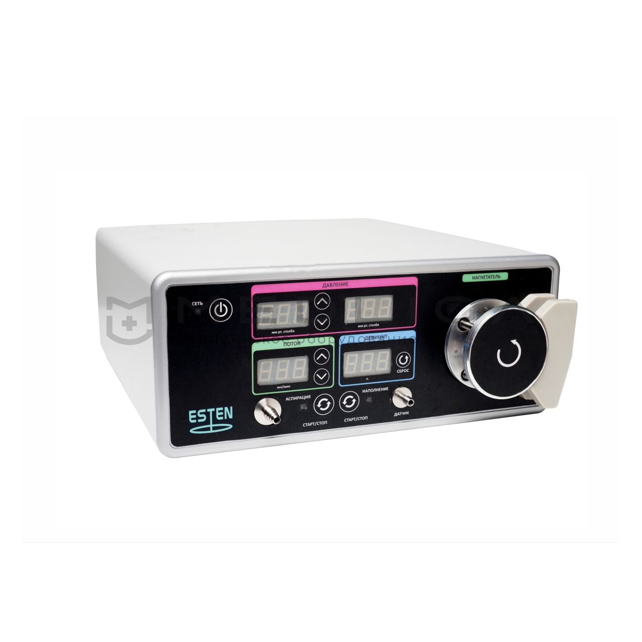 Уропомпа предназначена для создания давления в полости мочевого пузыря, а также для ирригации лечебными растворами в процессе урологических манипуляций. Прибор имеет модуль аспирации с системой контроля переполнения емкости.