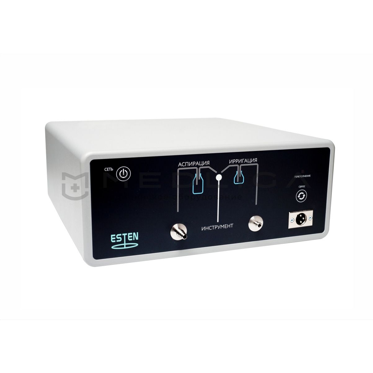 Аппарат для аспирации и ирригации эндоскопический предназначен для аспирации и ирригации зоны операционного поля при лапароскопических вмешательствах. Прибор имеет функцию управления работой с помощью инструмента - без использования педали. Также управление может быть выполнено с панели прибора и педали. Мощность позволяет аспирировать из полостей не только жидкие ингредиенты, но и сгустки крови, а также гной и волокна фибрина.