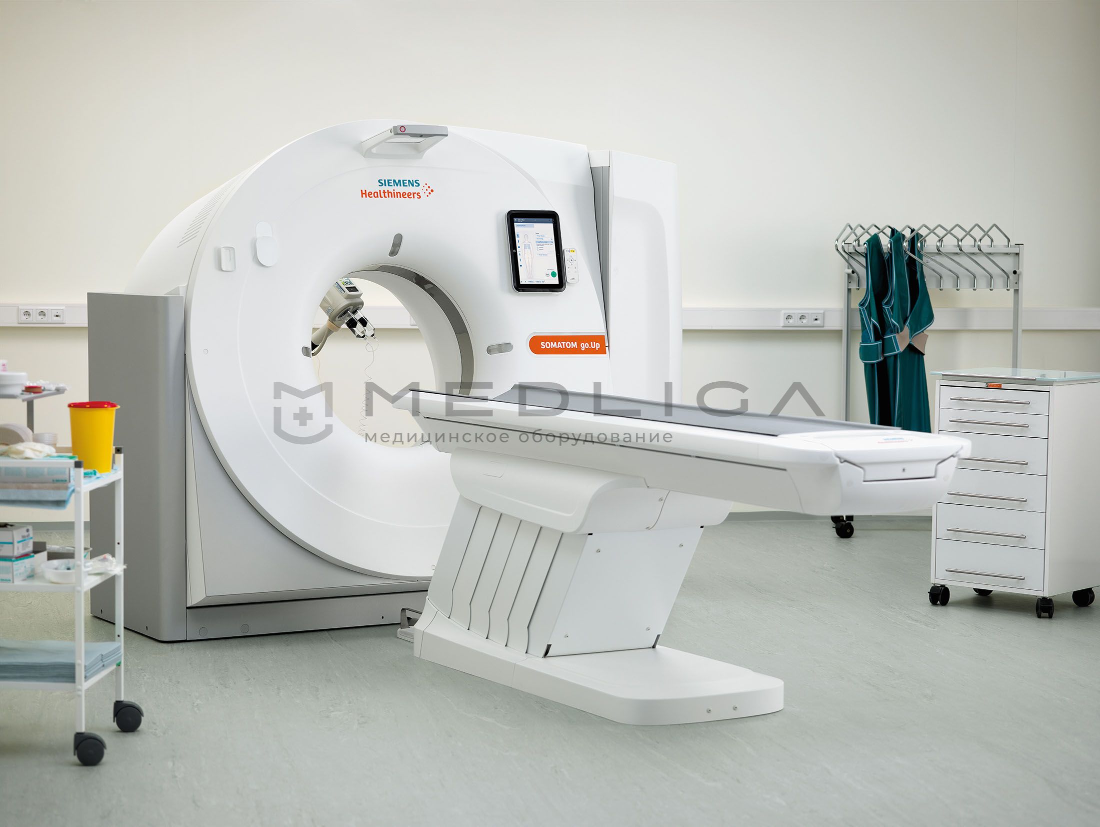 Система SOMATOM go.Up от компании Siemens основана на новом мобильном рабочем процессе, в ней реализован ряд инновационных решений, которые обеспечивают высочайший уровень гибкости и мобильности в повседневных КТ-исследованиях.