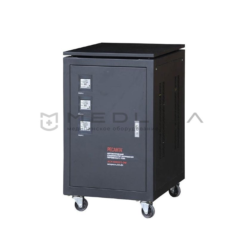 Стабилизатор напряжения Ресанта АСН-60000/3-ЭМ предназначен для обеспечения качественного электропитания и поддержания стабильного напряжения сети 380 В, 50 Гц.