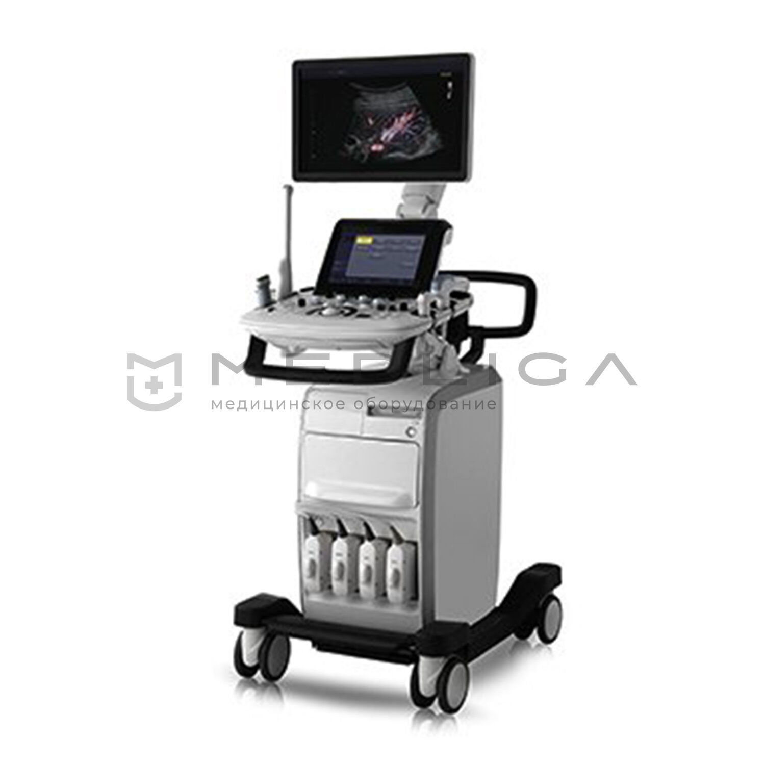 Передовые технологи визуализации и пост-обработки изображений, светодиодный LED монитор с широким углом обзора и сенсорная панель управления. Компактный дизайн позволяет разместить сканер возле постели больного для максимального удобства.